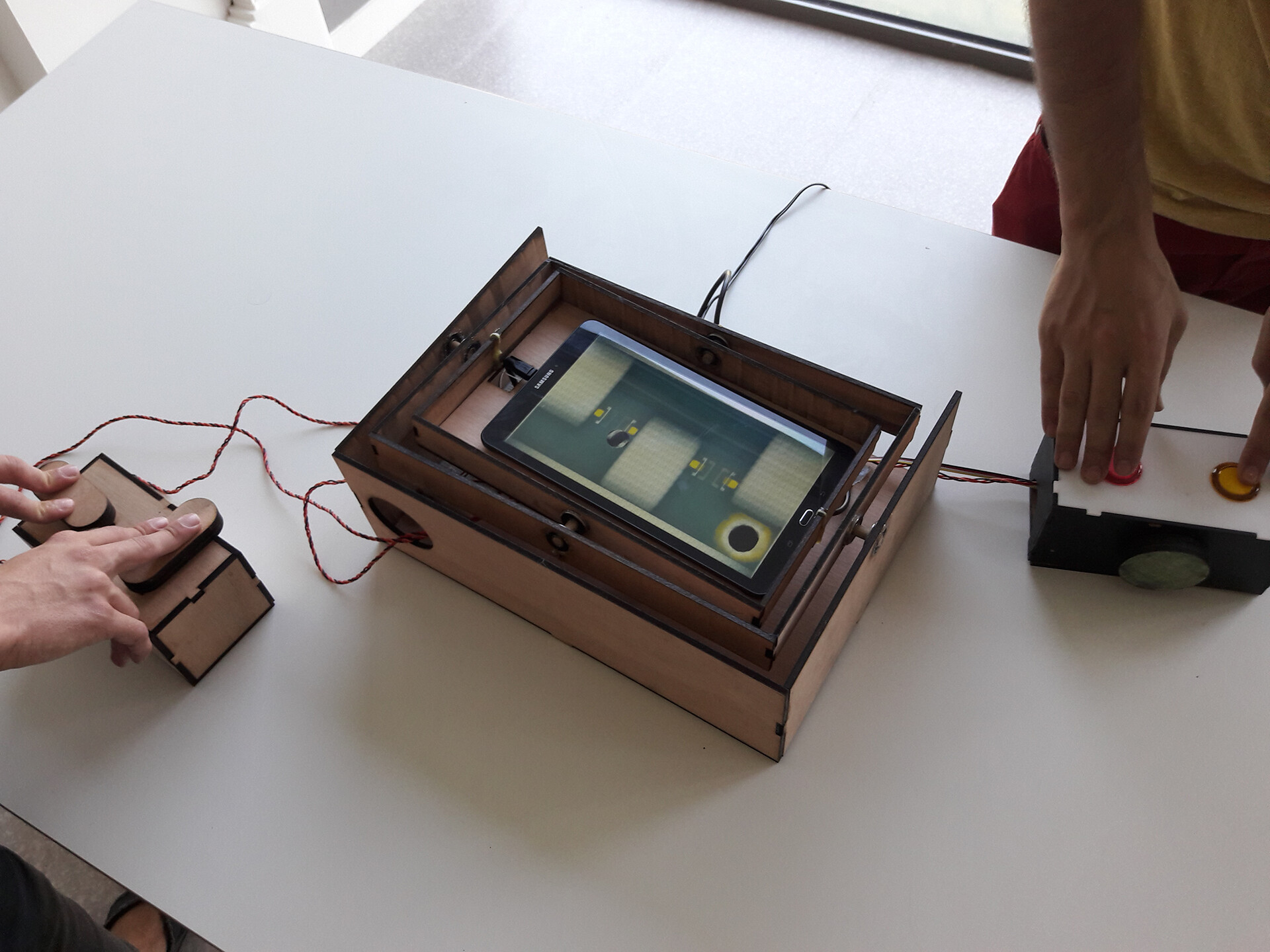 Petit jeu vidéo de rythme et de réflexe basé sur le son pour les personnes aveugles. Le but est de diriger son pion vers la direction du son stéréo (gauche ou droite) sur un rythme qui augmente en fonction du temps.