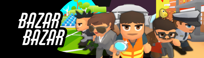 Bazar Bazar est un party game et hidden game en ligne de 2 à 6 personnes où les joueurs doivent accomplir un objectif dans un environnement loufoque, avec des altérations des règles du jeu qui se cumulent à chaque round, donnant une expérience de plus en plus explosive, cartoonesque et hilarante.